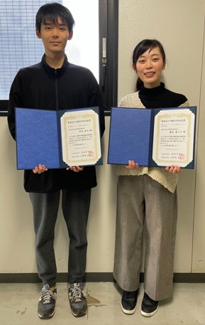 第12回高分子学会グリーンケミストリー研究会シンポジウム 第26回プラスチックリサイクル化学研究会研究討論会 合同発表会でのM2の神岡くんの「硫黄を原料とする新規硫黄含有ポリマーの合成とそのリサイクル特性」とM2の松田くんの「硫黄含有ポリマーの複合化による物性変化の調査」の発表が優秀発表賞を受賞しました(理学研究科のHPにも紹介されています)。
